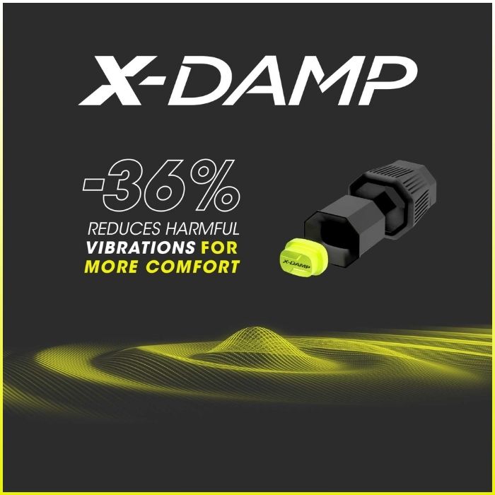 Technologie navržená k odstranění problému vibrací a zajištění maximálního komfortu. V rukojeti je umístěn ocelový prvek uložený v elastomerové kapsli, který se pohybuje v opačném směru než náraz míčku. Výsledek? Až o 36 % méně škodlivých vibrací přenášených na ruku a menší únava během hry